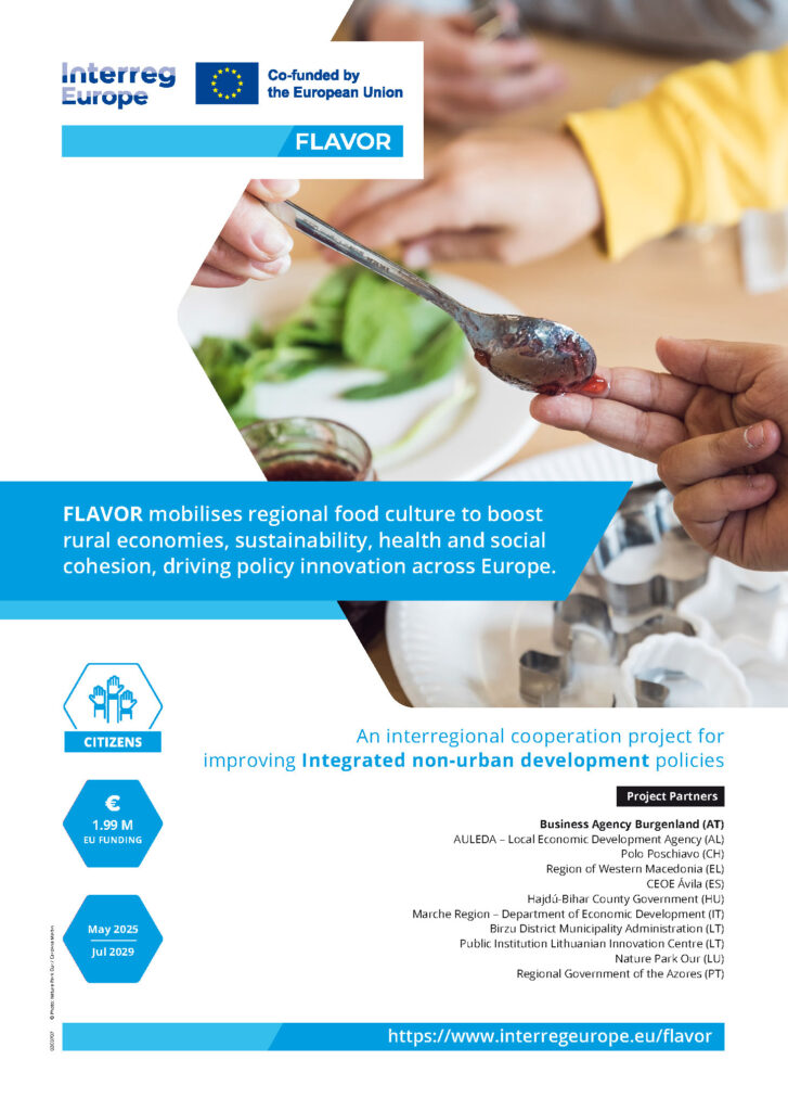 Attraverso lo scambio tra 11 partner di 10 Paesi europei, FLAVOR sostiene una transizione verso modelli di sviluppo sostenibili, basati sull’identità territoriale e sulla salvaguardia del patrimonio immateriale.